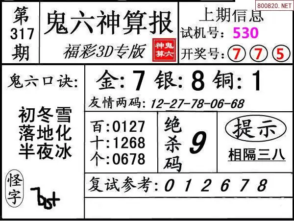 鬼六图25317期鬼六神算报+鬼六胆码图迷
