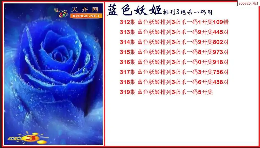 2025年蓝色妖姬319期排列3绝杀一码图(原创)