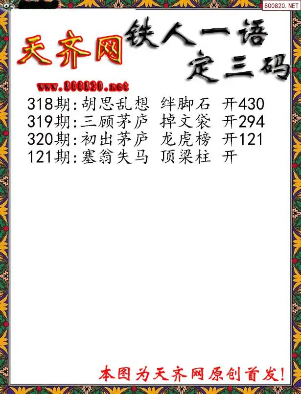 您现在所在的位置: 天齐网 >> 福彩3D >> 3D图谜 >> 正文