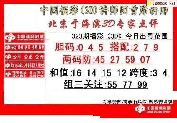 323期于海滨福彩3D专家点评(图迷版)