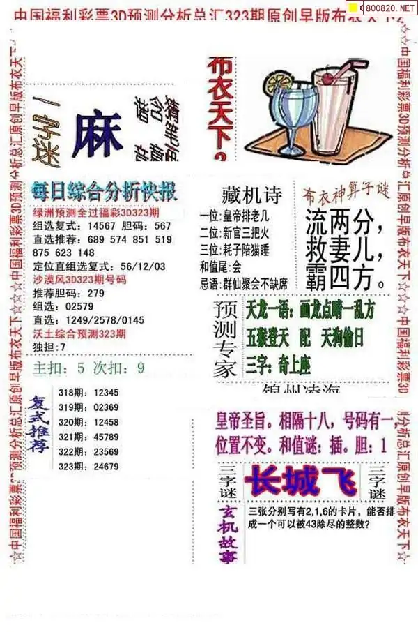 布衣图323期布衣定位杀+布衣神算图迷