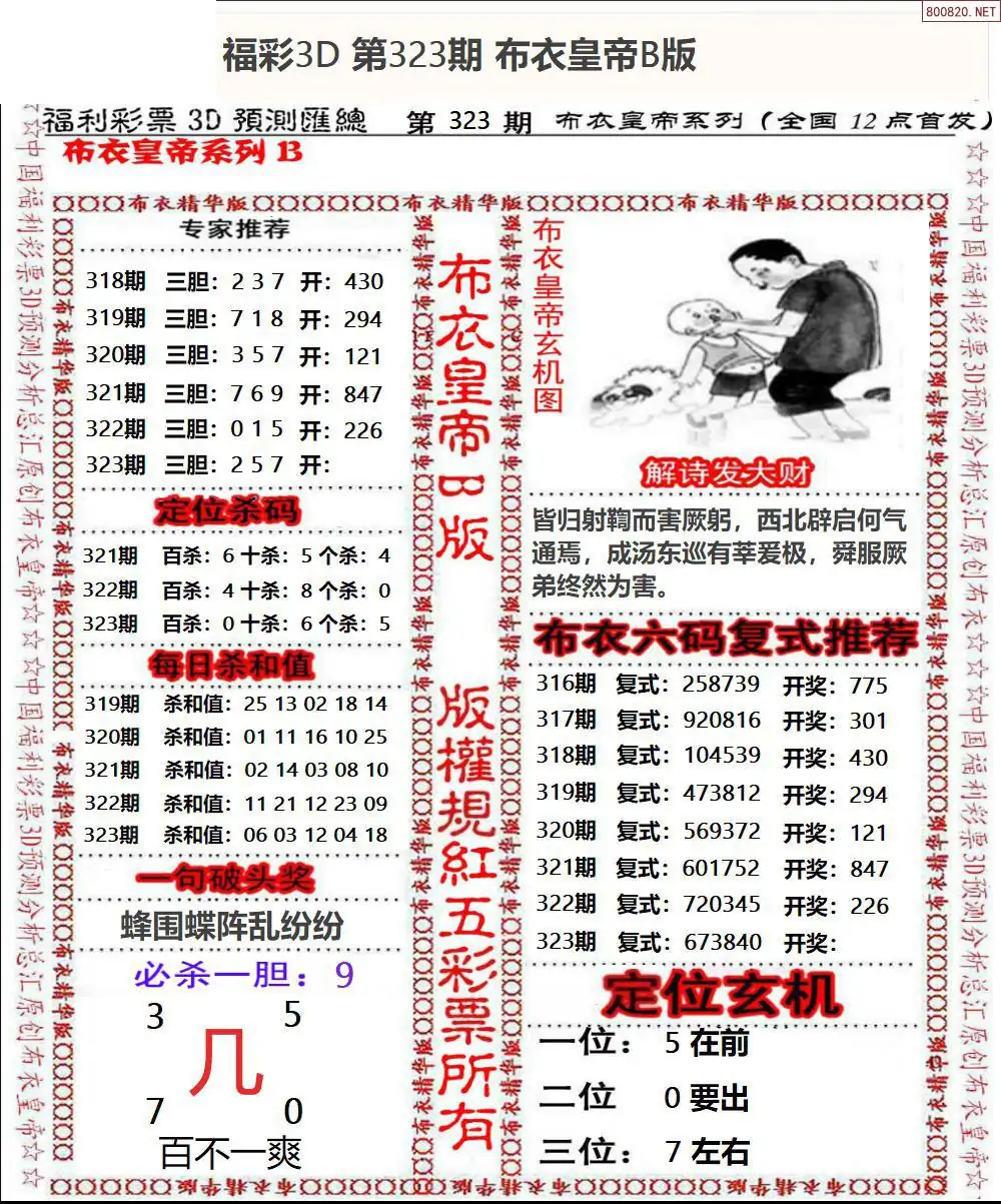 皇帝图25323期布衣皇帝+老夫子布衣3d图谜