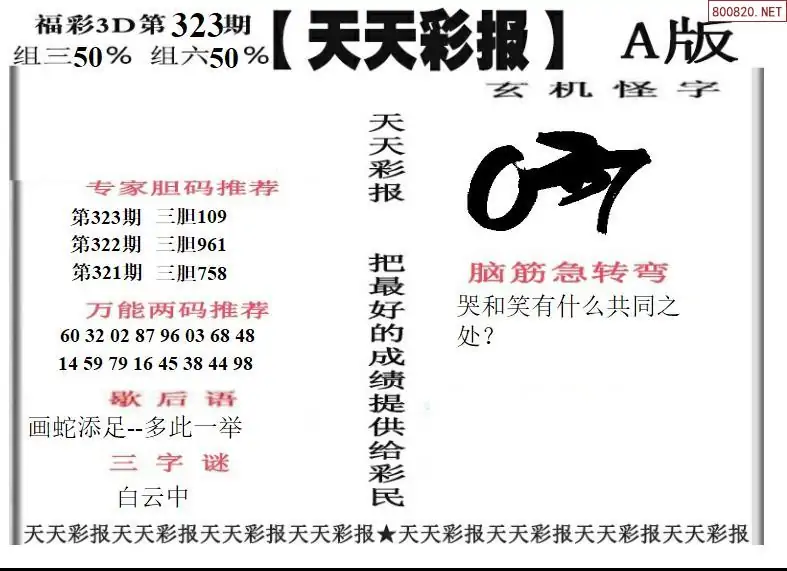 您现在所在的位置: 天齐网 >> 福彩3D >> 3D图谜 >> 正文