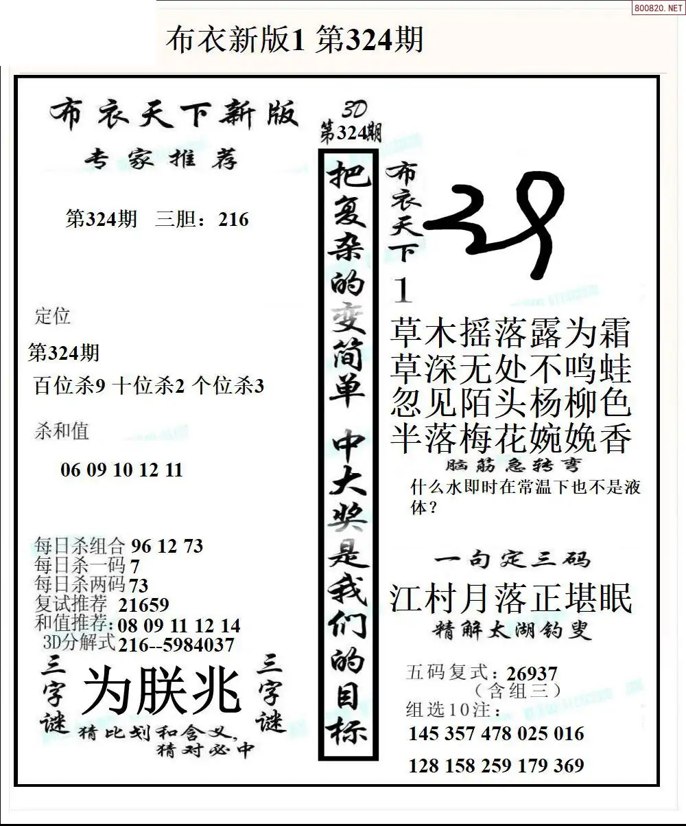 25324期新版3d布衣天下1234