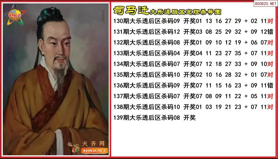 司马迁2025139期大乐透后区定胆杀号图-原创