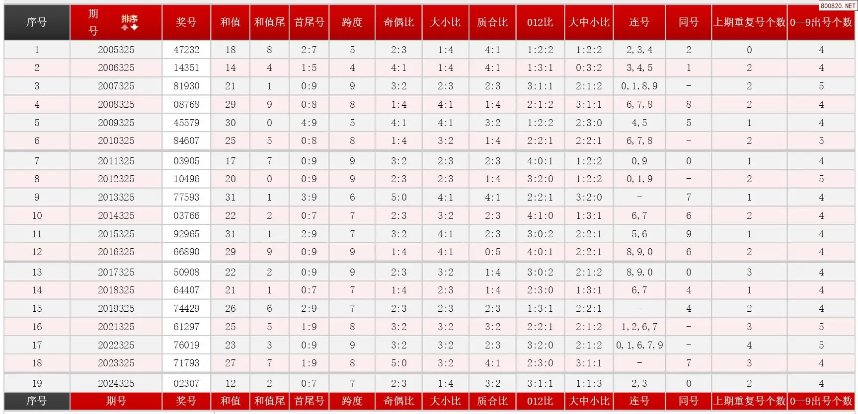 325期体彩P5历史同期对比图表+近期走势图分析