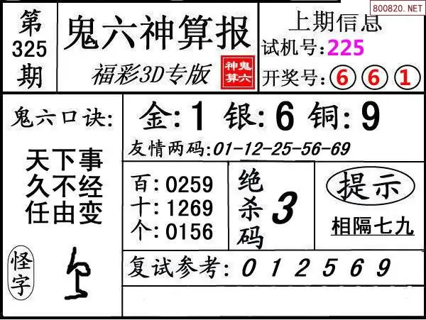 鬼六图25325期鬼六神算报+鬼六胆码图迷