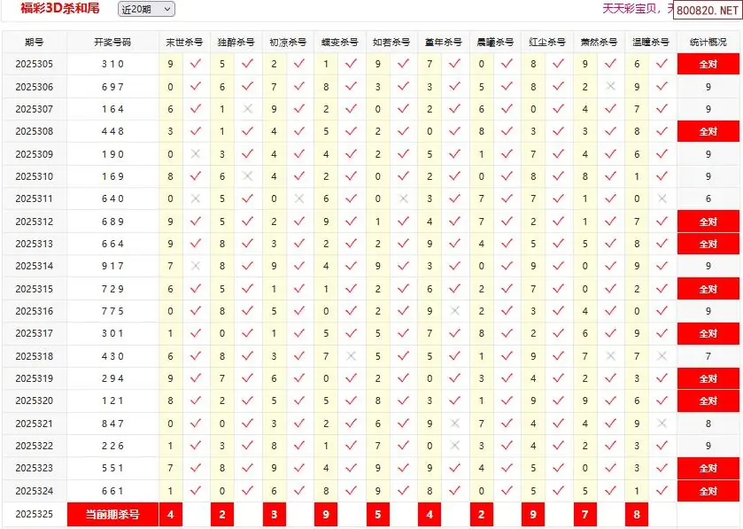 25325期彩宝贝福彩3D杀和尾