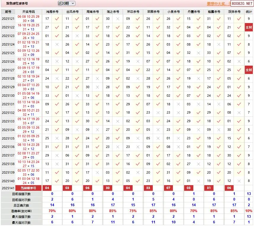 20 双色球2025141期[天天彩]杀一蓝免