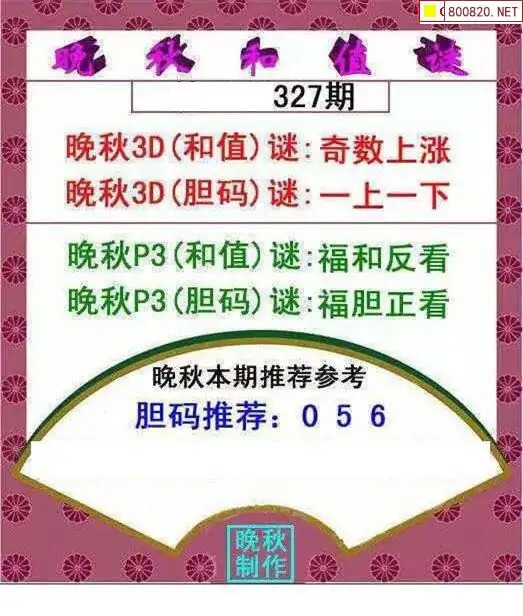 晚秋图25327期3d晚秋和值迷图谜版