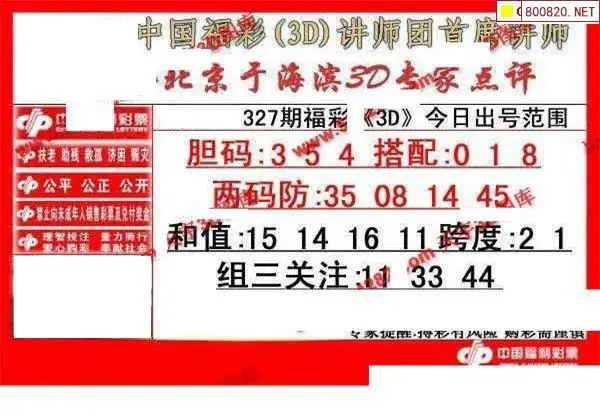 327期于海滨福彩3D专家点评(图迷版)
