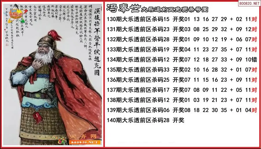 冯奉世2025140期大乐透前区免费杀号图-原创