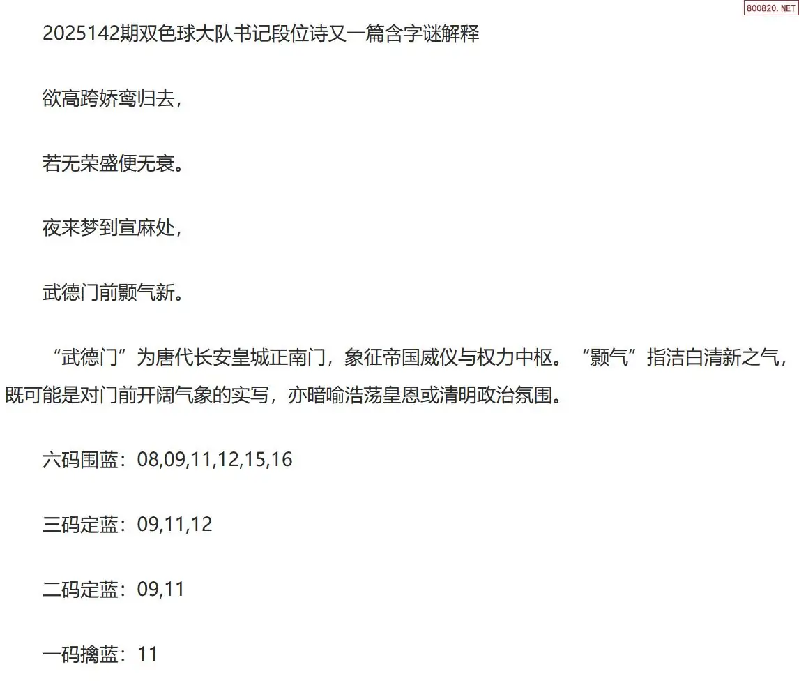 8 双色球25142期牛彩字谜诗迷汇总(天
