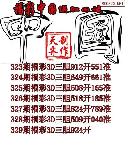 2025329期福彩中国福彩3d胆码图谜