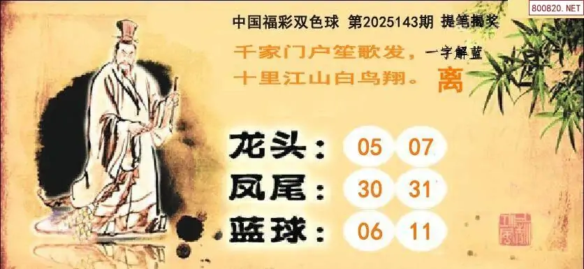 双色球25年143期提笔揭奖龙头凤尾图谜