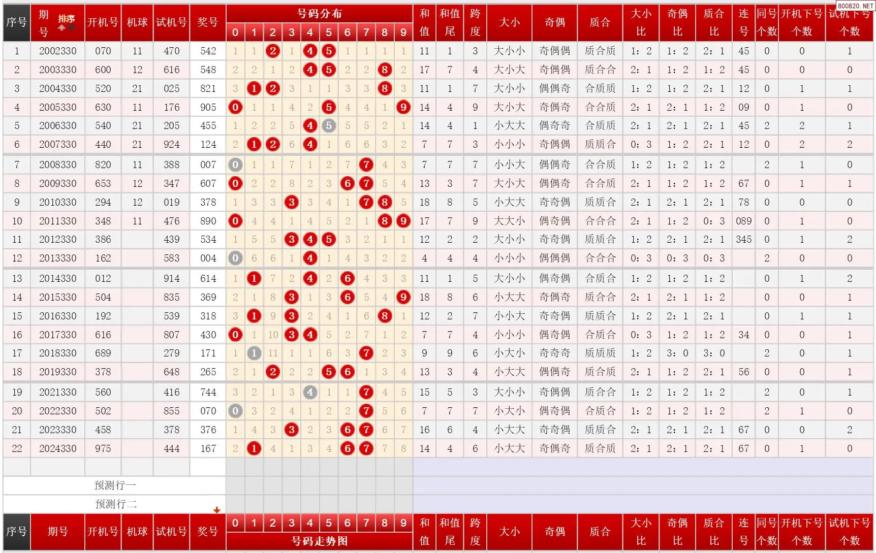 330期福彩3D历史同期对比图表+近期走势图分析