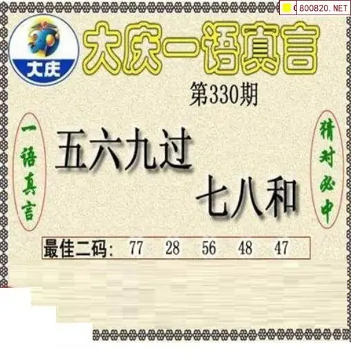 大庆图25330期大庆五码+一语真言黑胆3d图谜