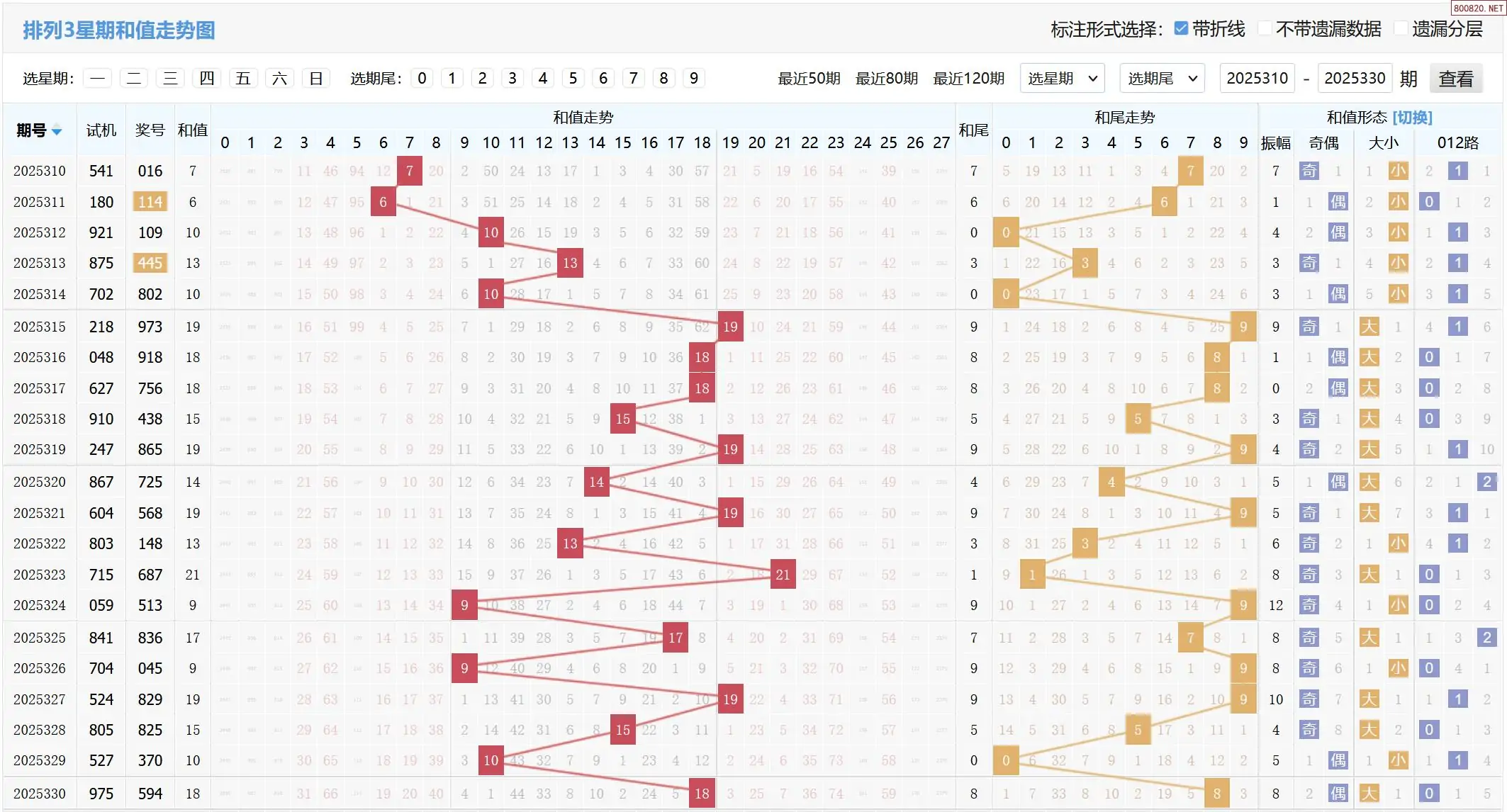 2025331期体彩P3基本走势图如下: