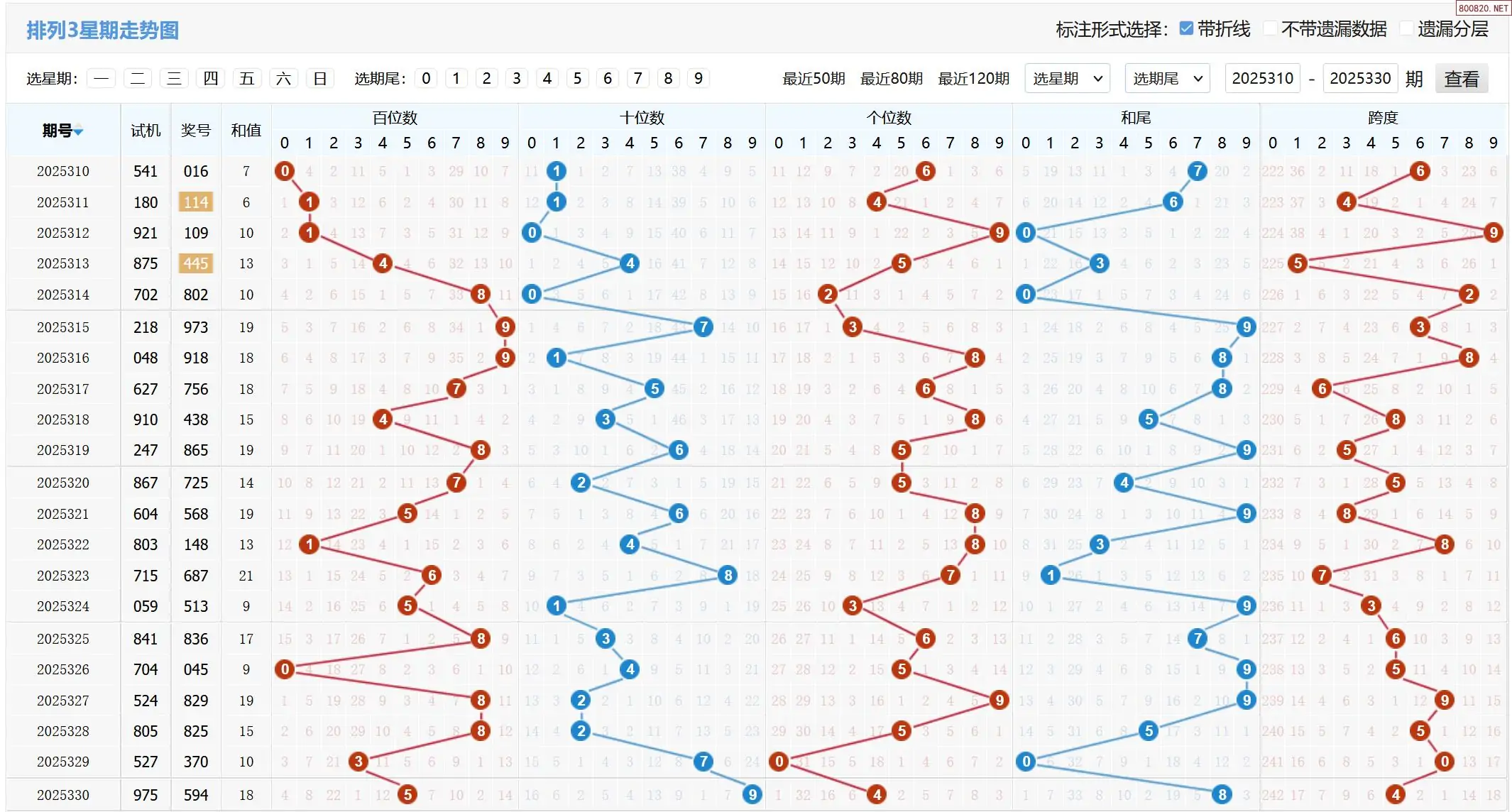 25年330期体彩P3试机号:975