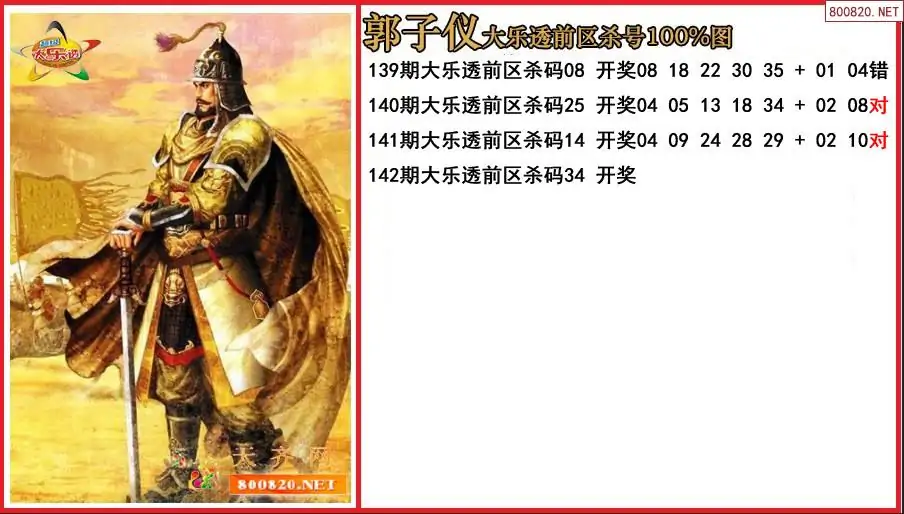 郭子仪2025142期大乐透前区杀号100%图-原创