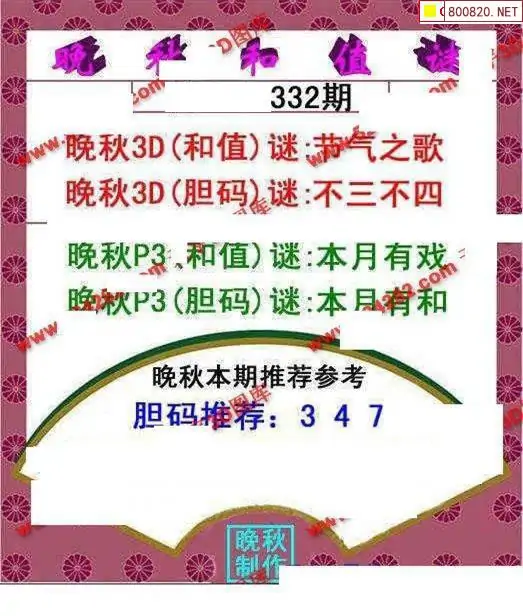晚秋图25332期3d晚秋和值迷图谜版
