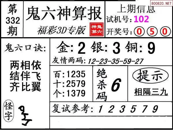 鬼六图25332期鬼六神算报+鬼六胆码图迷