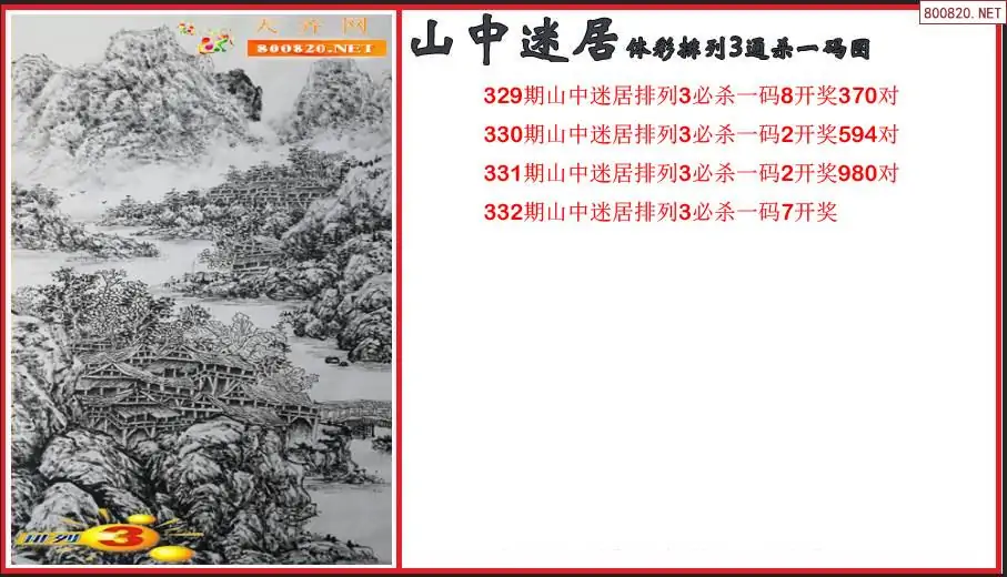 2025332期山中迷居体彩排列3通杀一码图(原创)