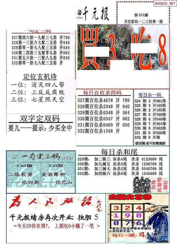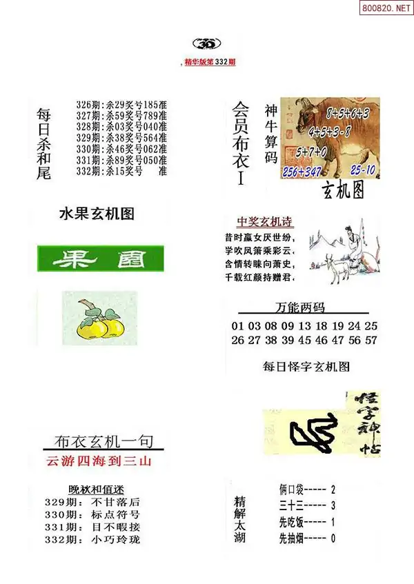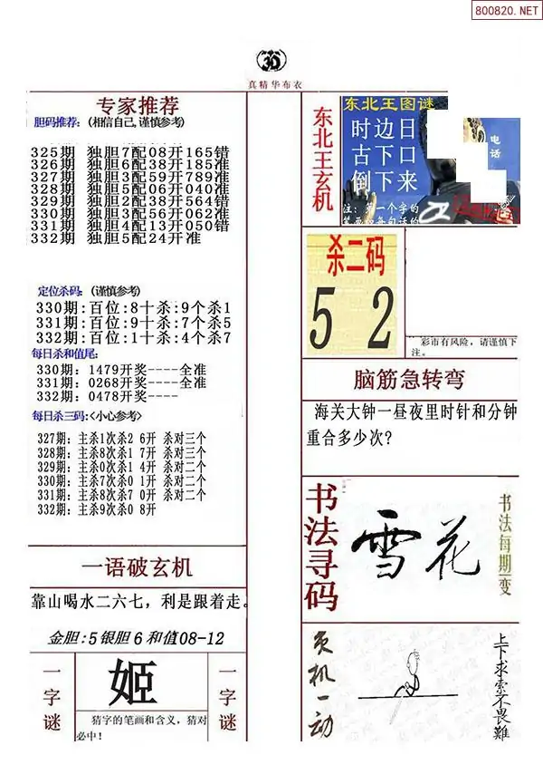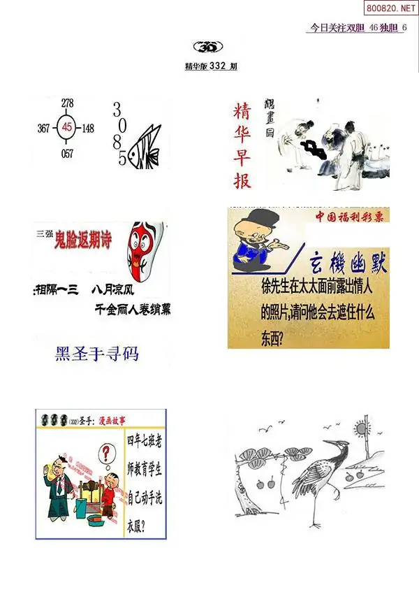 16 鬼六图25332期鬼六神算报+鬼六胆码