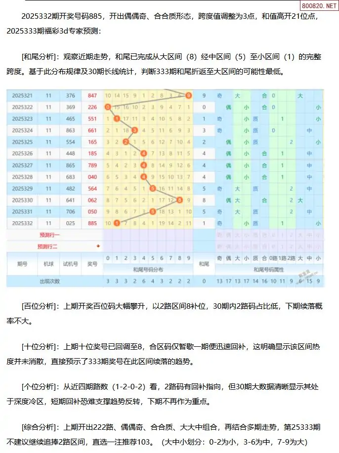 福彩3D第2025333期[玩彩高手]最准最新3d号码预测