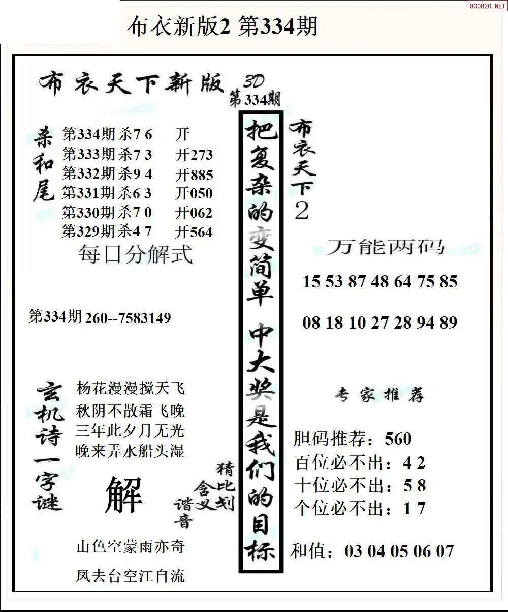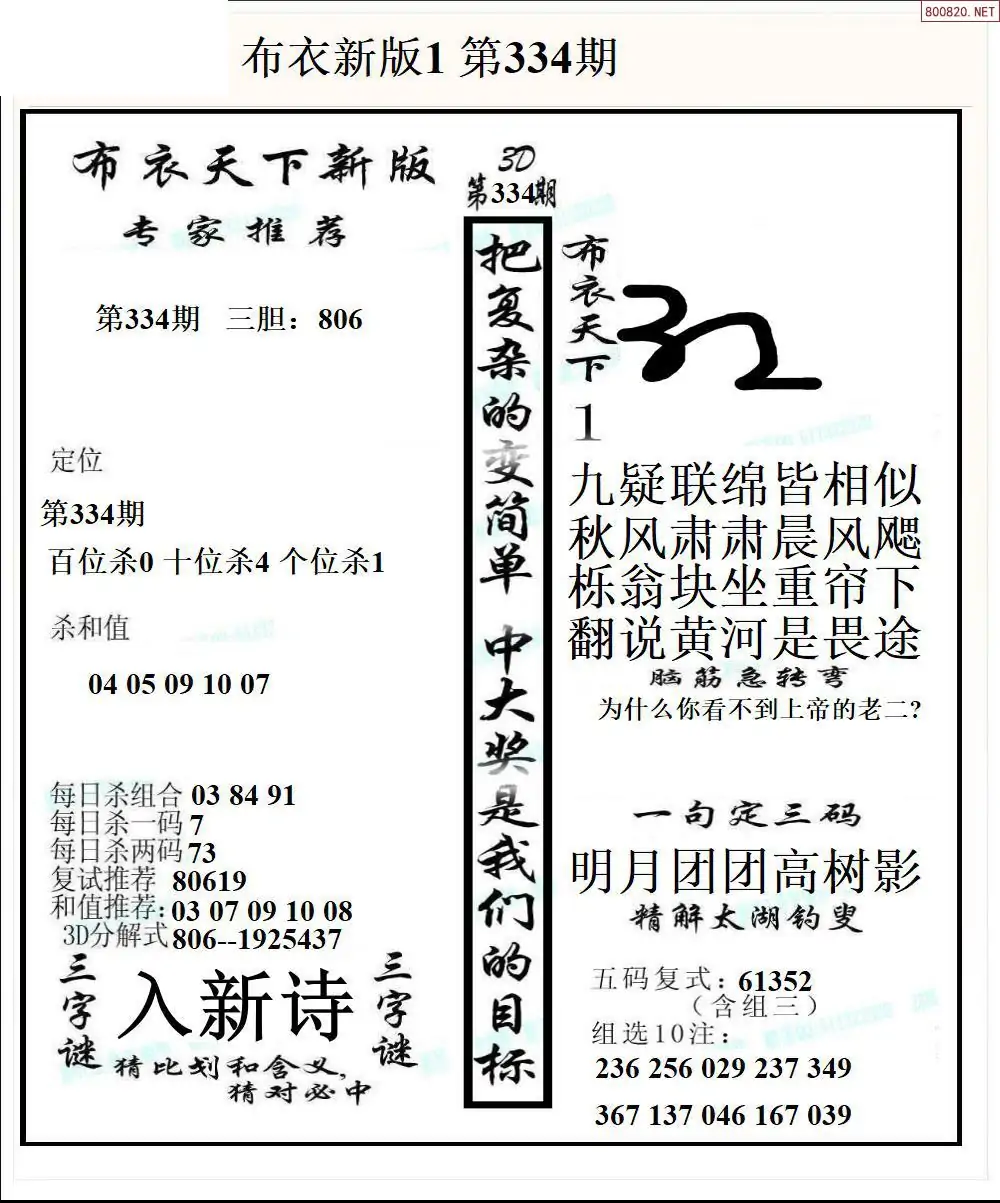 25334期新版3d布衣天下1234