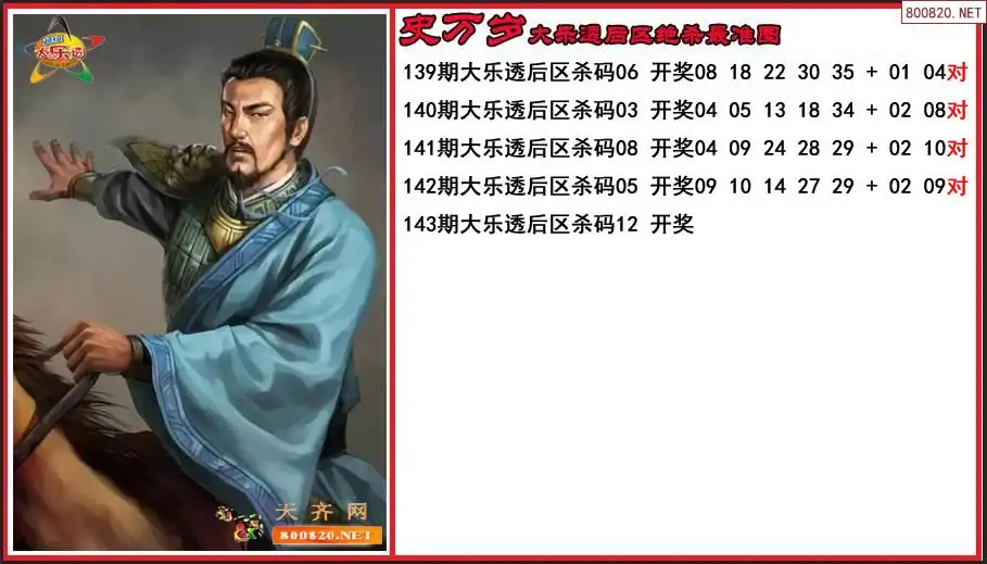 史万岁2025143期大乐透后区绝杀最准图-原创