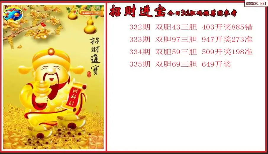 招财进宝2025335期今日3d胆码推荐图参考(原创)