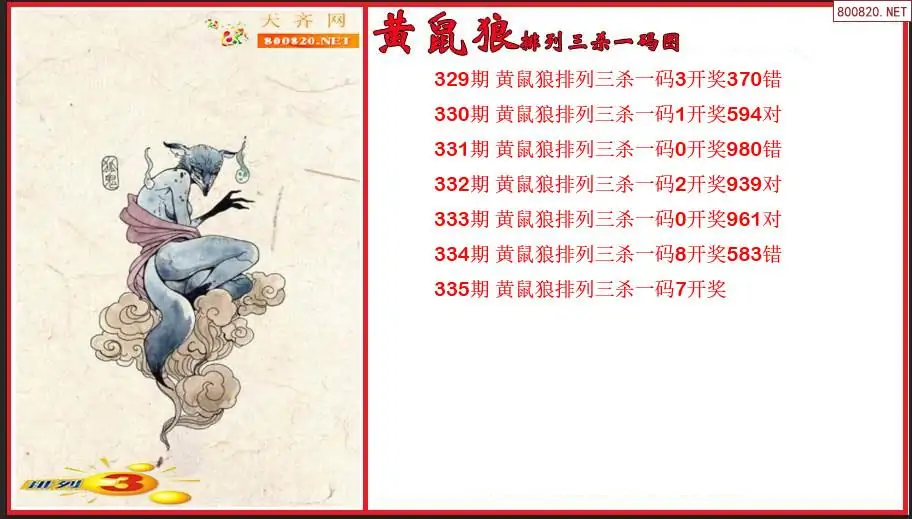 排列3第2025335期黄鼠狼杀一码图(原创)