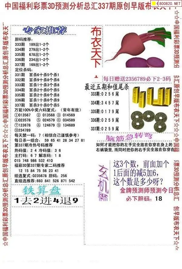 布衣图337期布衣定位杀+布衣神算图迷