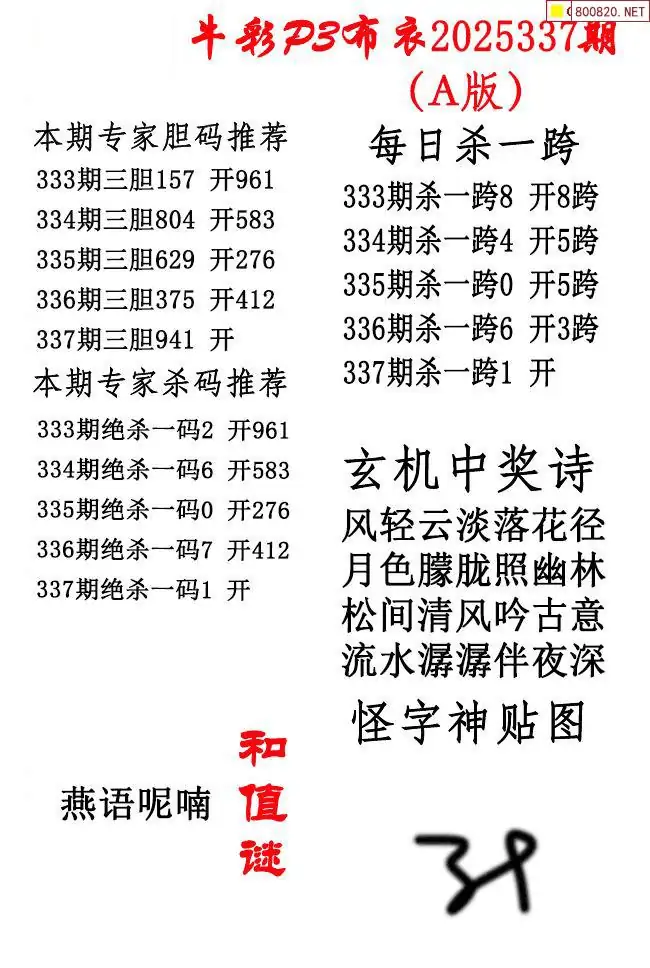 牛彩体彩P3布衣2025年337期AB版图谜(精华版)