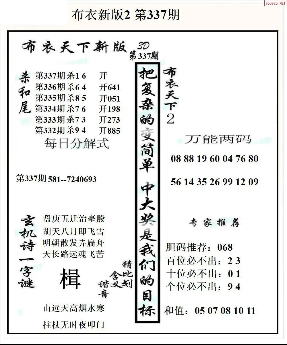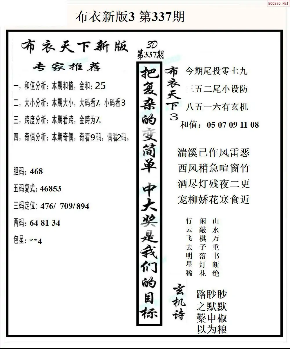 25337期新版3d布衣天下1234