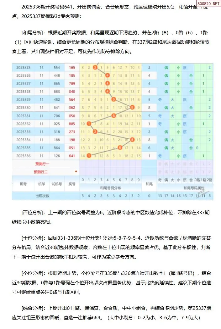 福彩3D第2025337期[玩彩高手]最准最新3d号码预测