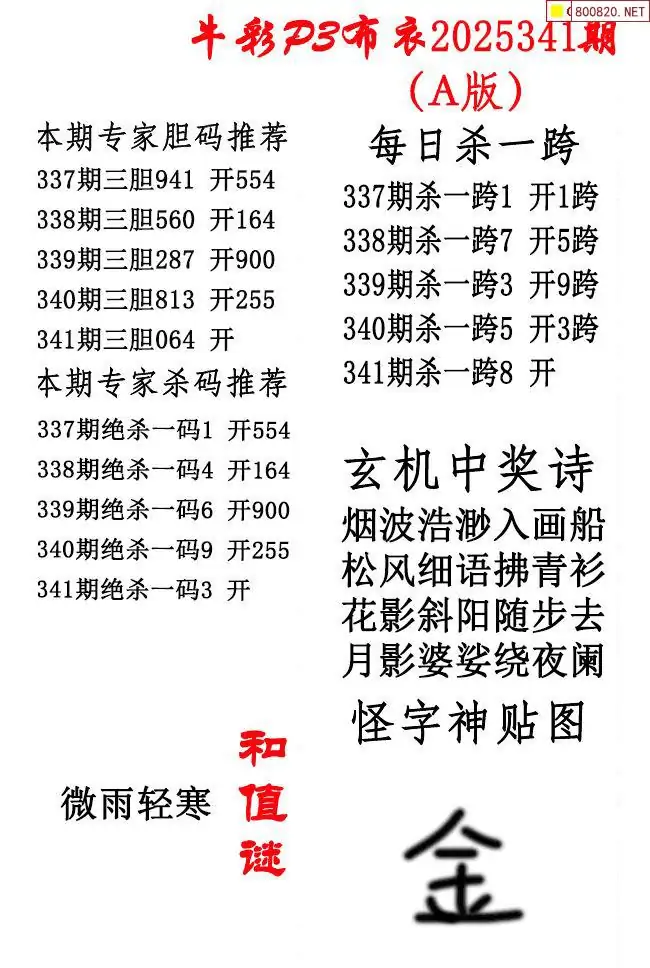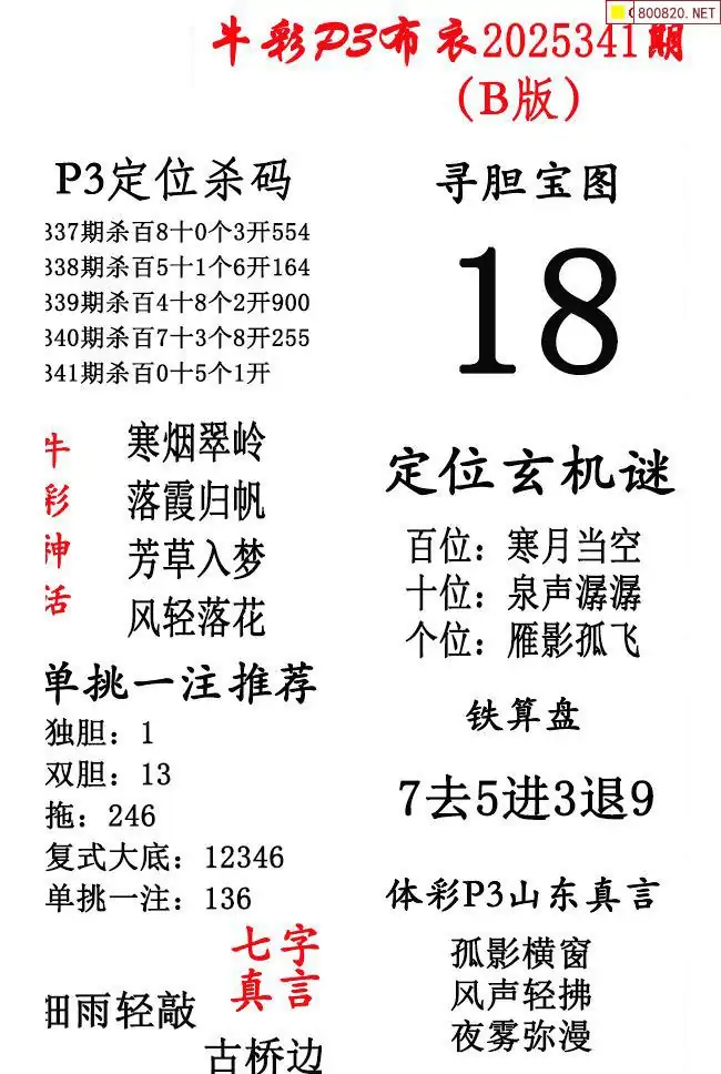牛彩体彩P3布衣2025年341期AB版图谜(精华版)