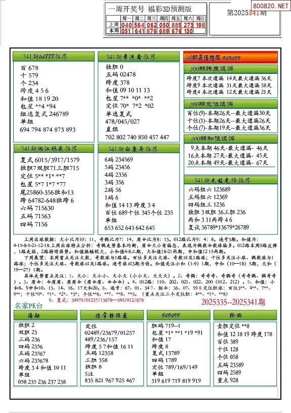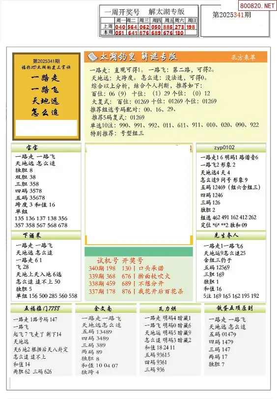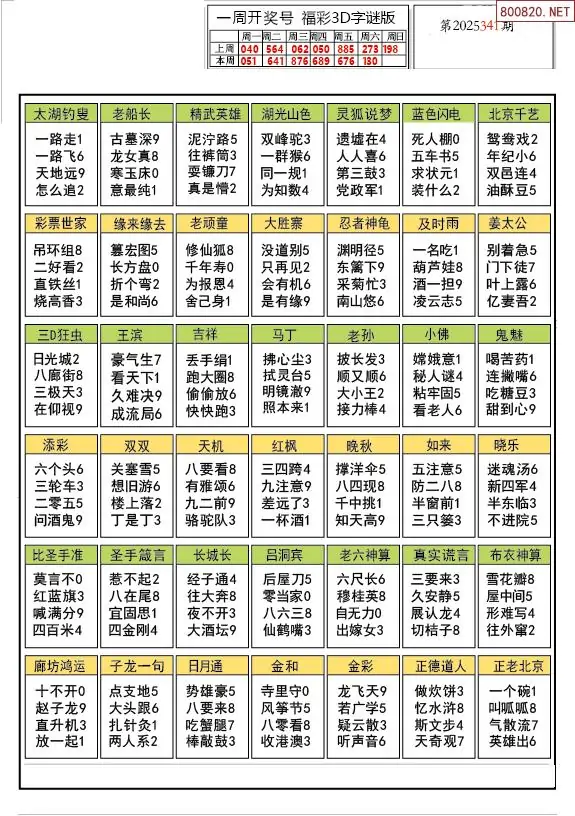 25年341期解太湖3d字图迷汇总彩报
