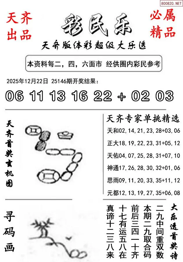 25年147期天齐版大乐透彩民乐图谜