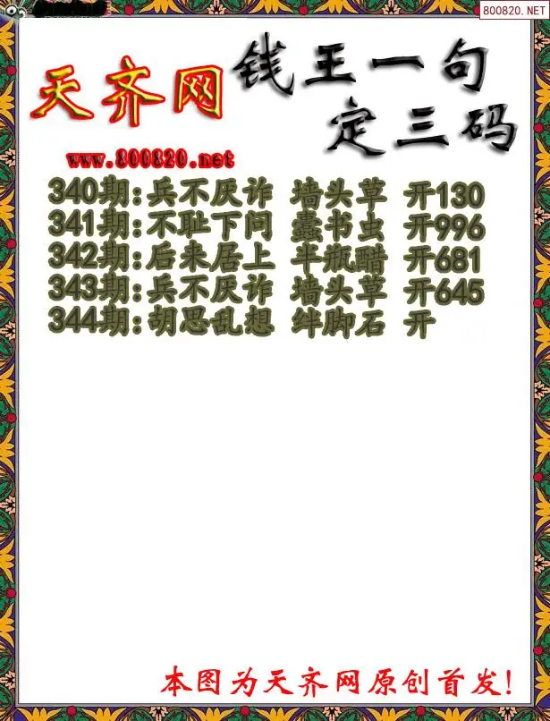 344期钱王3D一句定三码字图谜