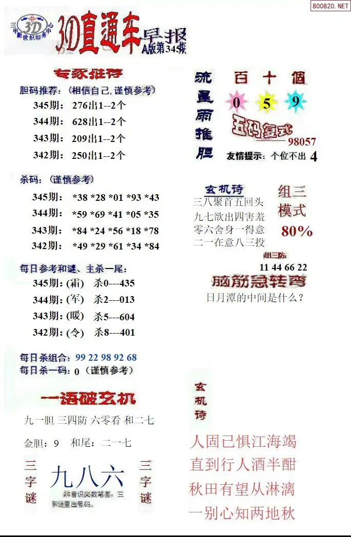 25年345期福彩3D直通车早报ABCD版