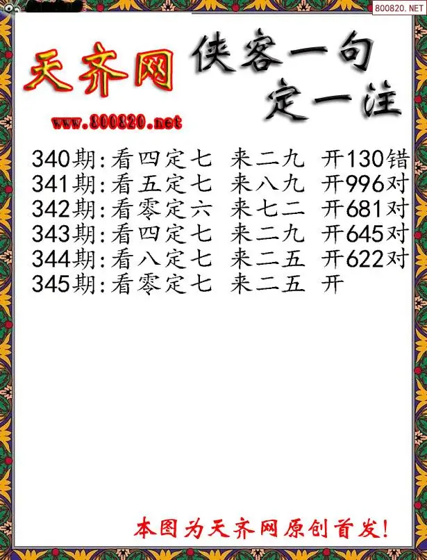 345期侠客一句3D定三码字图谜