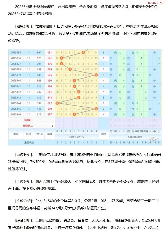 福彩3D第2025347期[玩彩高手]最准最新3d号码预测