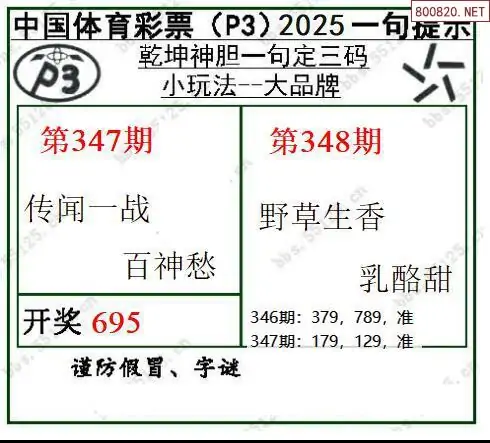 2025348期乾坤一句p3定三码图谜