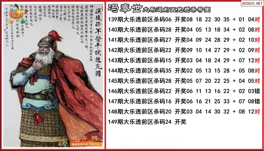冯奉世2025149期大乐透前区免费杀号图-原创
