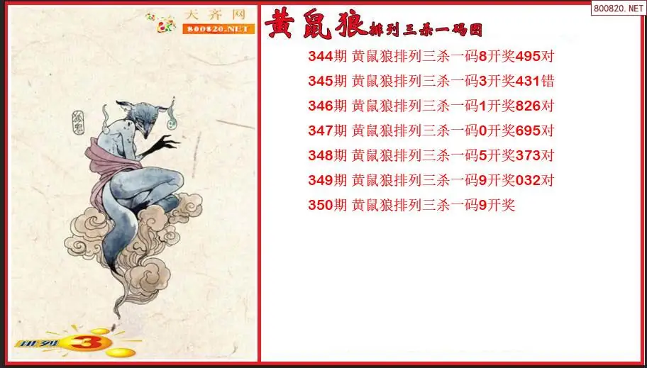 排列3第2025350期黄鼠狼杀一码图(原创)
