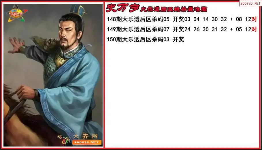 史万岁2025150期大乐透后区绝杀最准图-原创