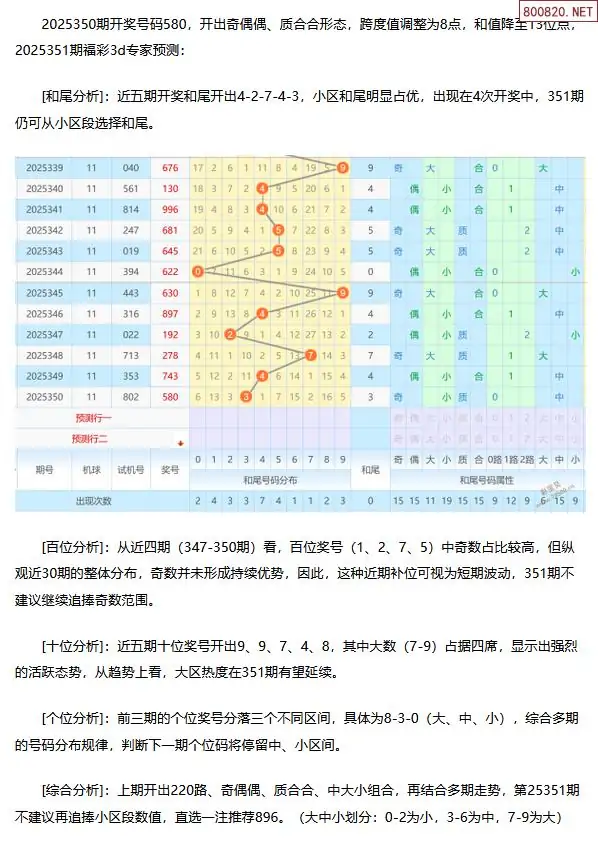 福彩3D第2025351期[玩彩高手]最准最新3d号码预测