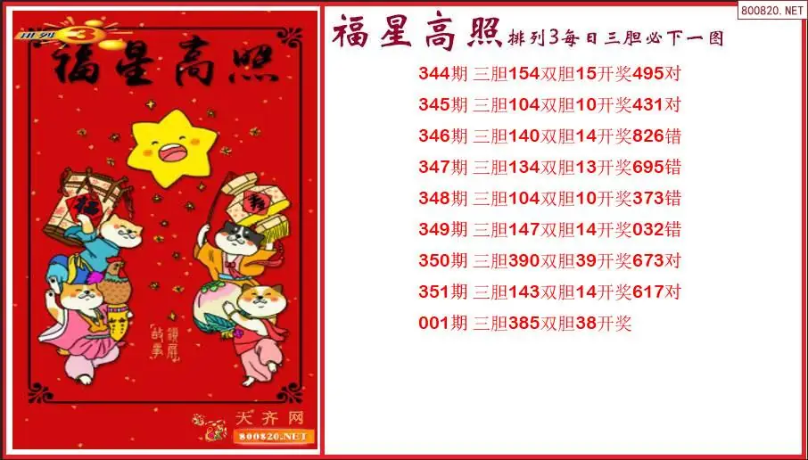 福星高照2026001期排列3每日三胆必下一图(原创)